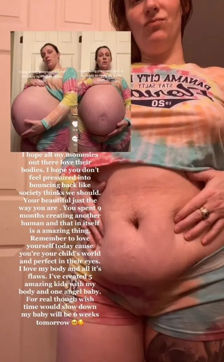 Тя разкри тялото си след раждането в друго видео в TikTok, оставяйки зрителите изумени от липсата на стрии. Един човек отбеляза: „Няма стрии?!!!“ „Пет деца и никакви стрии, благословена“, коментира друг потребител. В отговор на видеото друг човек написа: „Телата ни са напълно СТРАХОТНИ!! Кожата ти изглежда толкова добра мамо!“