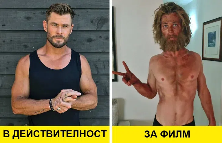 В началото на кариерата си Крис Хемсуърт претърпя поразителна физическа трансформация за “В сърцето на морето”, където изглеждаше забележително по-слаб в сравнение с обичайното си мускулесто телосложение — наподобяваше по-слаба версия на Тор. Хемсуърт разкри, че ограничи дневния си калориен прием до само 500 калории — малка част от обичайната диета от 2000 калории дневно. Допълни това екстремно ограничаване на калориите с почти ежедневни тренировки, а диетата му се състоеше основно от варени яйца, салата и минимално разнообразие.